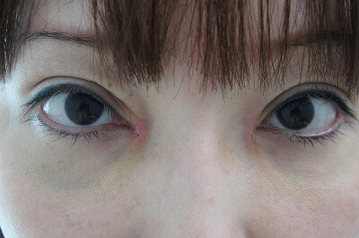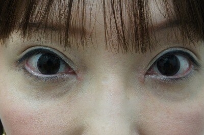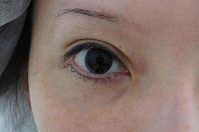 2、術後1週間・・・とても素敵な瞳です☆抜糸直後、お化粧ない状態なので、赤みは目立ちます。お化粧で隠せる程度で、お化粧がなくても1〜3〜6ヶ月と傷はドンドン目立ちにくくなります。