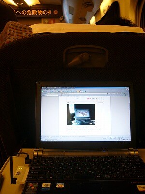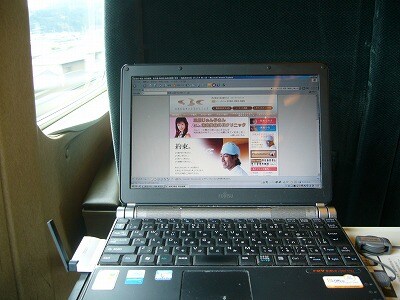 新幹線で静岡付近、EMOBILE、快調です♪ お気に入り、RIMOWAのキャリーケースも一緒です