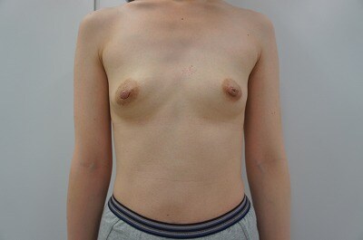 1、術前・・・もともと小さめのバストがコンプレックスで、、、授乳でバストが更に小さく、、、形が綺麗で大きなバストに憧れる!!とのご相談をいただきました。