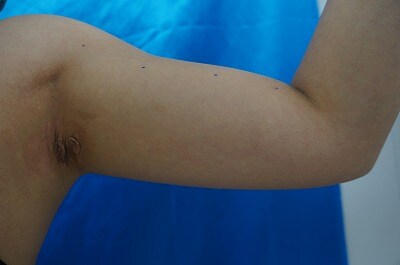 1、術前・・・ダイエットでなかなか落ちない、二の腕・肩・背中の気になるお肉をスッキリさせたい!!と、私中村にご相談をいただきました。