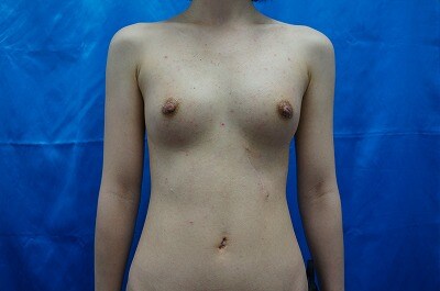1、術前・・・小さなバストが悩みで、、、形が綺麗で大きなバストにずっと憧れる!とのご相談をいただきました。