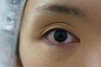 2、術直後・・・とても綺麗な瞳です!目力をアップしながら自然な末広型の完成です☆目が開きやすくなったとご満足いただけました。ご自身の瞳に自信をもって、より良い人生をお過ごしいただければ僕も嬉しいです^^翌後2日には、腫れがほぼ落ち着き、より自然なラインに馴染んでまいります。術直後からお化粧が可能です