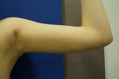 2、術後1か月・・・かなりスッキリしました!1ヶ月の時点では、皮膚の硬さはありますが、術後3か月でまんべんなく柔らかくなります。皮膚の色のムラは、術後6カ月でほぼ落ち着きます。皮膚のピリピリ感は、術後1年で完全に落ち着きます☆この方の自信につながり、より良い人生をお送りいただければ、僕は嬉しいです^^多くの四肢の手術の経験があり、解剖を知り尽くしている、整形外科専門医 中村にお任せください☆