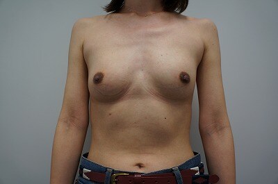 1、術前・・・張りが無いバストがコンプレックスで、、、形が綺麗で大きなバストに憧れる!とのご相談をいただきました。