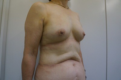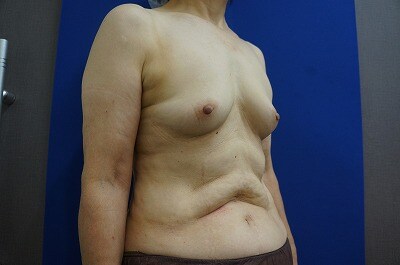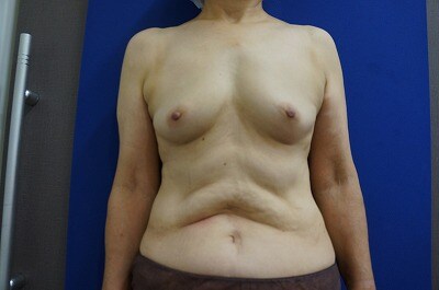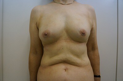 1、術前・・・もともとバストが小さくて、、、形が綺麗で大きなバストに憧れる!60代半ばで施術を決断した!!とのご相談をいただきました。