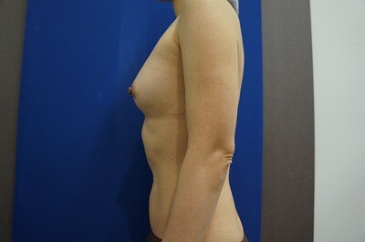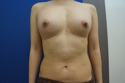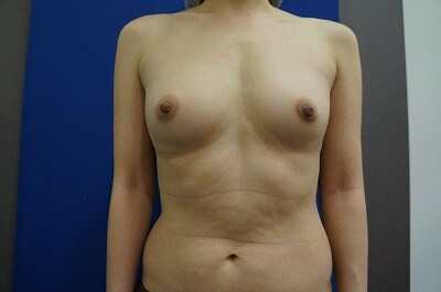 1、術前・・・もともとバストが小さくて、、、形が綺麗で大きなバストに憧れる!40代半ばで施術を決断した!!とのご相談をいただきました。