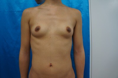 1、術前・・・小さなバストがコンプレックスで、、、形が綺麗で大きなバストに憧れる!とのご相談をいただきました。