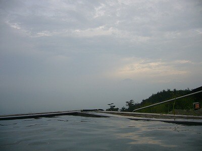 写真は、『ほったらかし温泉』です。富士山がうっすらと見えます。
